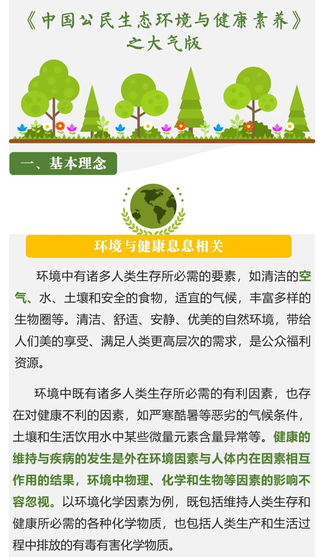 为引导公民正确认识人与自然的关系,普及现阶段公民应具备的生态环境与健康基本理念、知识、行为和技能,动员公众力量保护生态环境、维护身体健康,共建健康中国和美丽中国,生态环境部组织编制了《中国公民生态环境与健康素养》并于日前发布,那么其中与大气相关的内容有哪些呢?